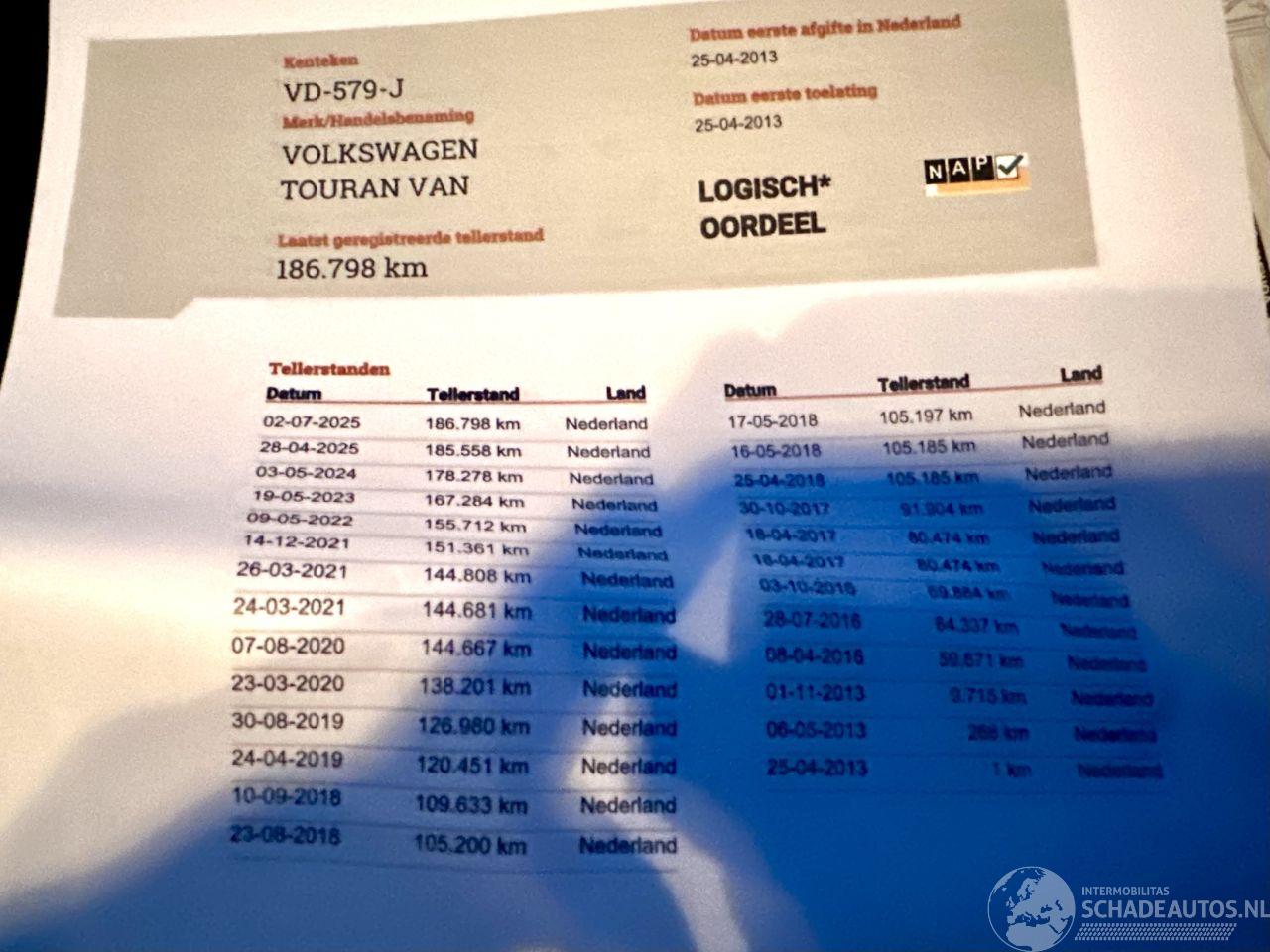 Luxe Touran 1.6 TDI Bleumotion 7-Traps DSG automaat + F1 flippers op stuurwiel - Comfortline pakket - grijs kenteken - licht + regensensor - clima + cruise control - luxe tussenschot - elektr pakket (4x elektr ramen + spiegels verwarmd) - lmv - trekhaak - metallic lak - cv op afstandbediening - org radio + cd + stuurbediening - esp - start/stop systeem - ORG NL + NAP + boekjes + 1x sleutel op afstandbed erbij