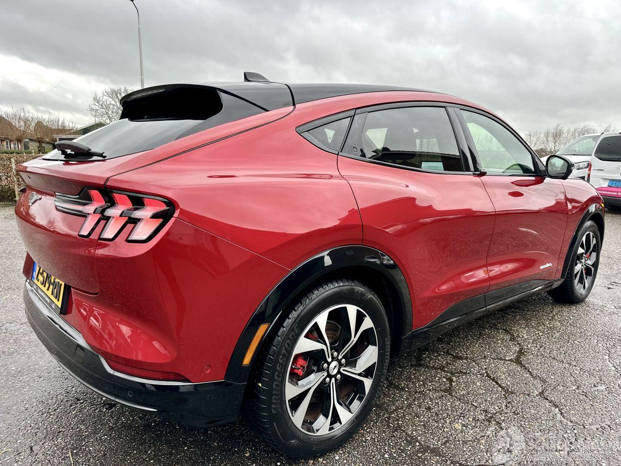 UNIEKE MUSTANG MACH-E 75kWh AUTOMAAT AWD - 2x sleutels + 2x laadkabels aanwezig - lage km.stand van 27.341km - 4x4 aandrijving - volledig panoramadak + zwarte hemel - 360 camera - elektr achterklep (ook te bedienen via voet) - front + line + side assist - keyless entry + start - clima + cruise control - licht + regensensor - B&O muziek installie + woofer - pdc v+a - metallic lak - vol zwart leer + rode stiksels - stoelverwarming - stuurverwarming - touchscreen multimedia + Apple CarPlay + Android - bleutooth tel lader - stuurbediening - 19 inch lmv - full led koplampen - privacy glass etc - financiering/lease mogelijk