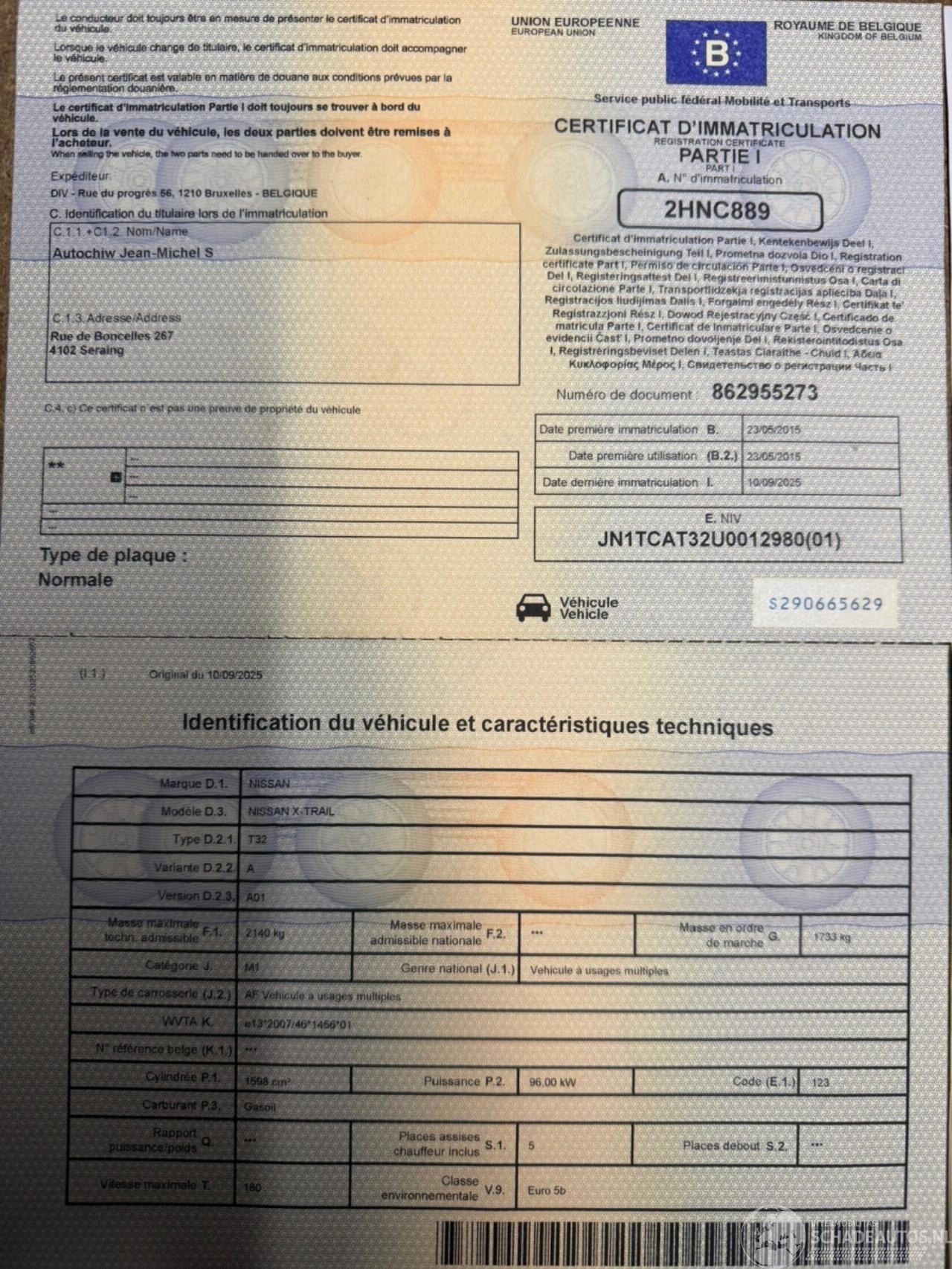 Reg. Certificate(I+II)=OK, C.O.C=OK, CarPass=OK, Technical Control required