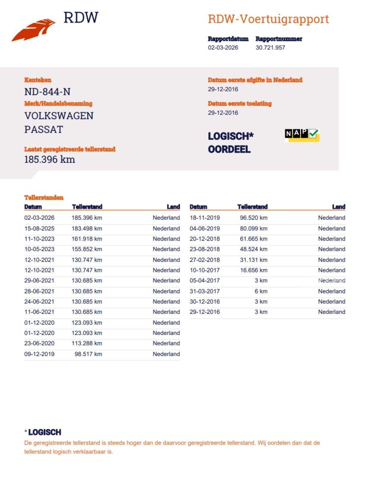 Verificación del kilometraje (NAP)