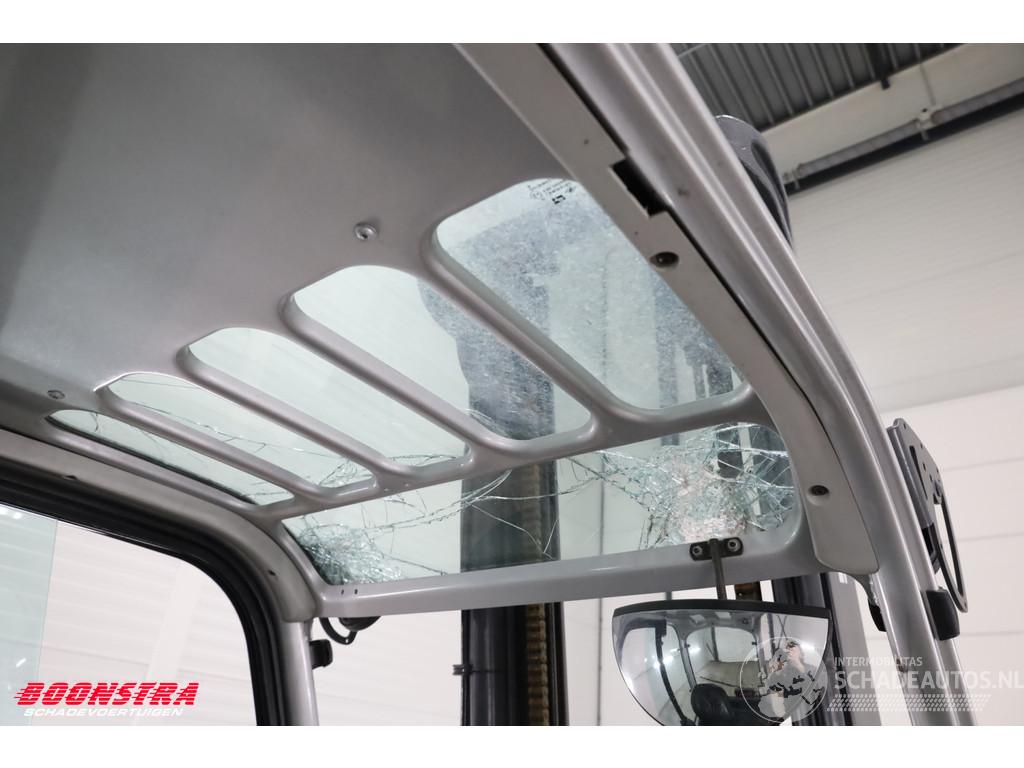 Heftruck is met te zware last voorover gekanteld en daarna is de mast terug omhooggeslagen tegen de cabine aan