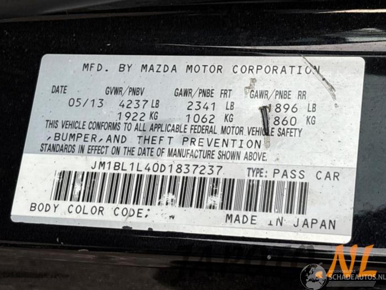 Numero di telaio: JM1BL1L40D18*****