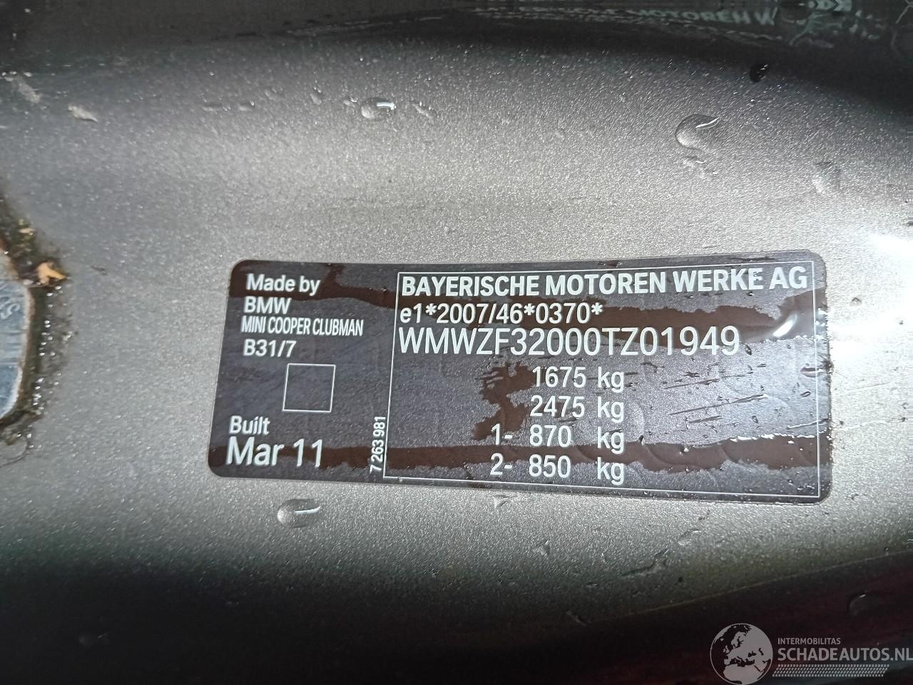 Model: MINI Clubman (R55) Combi 1.6 16V Cooper (N16-B16A) [90kW] (03-2010/06-2014= )