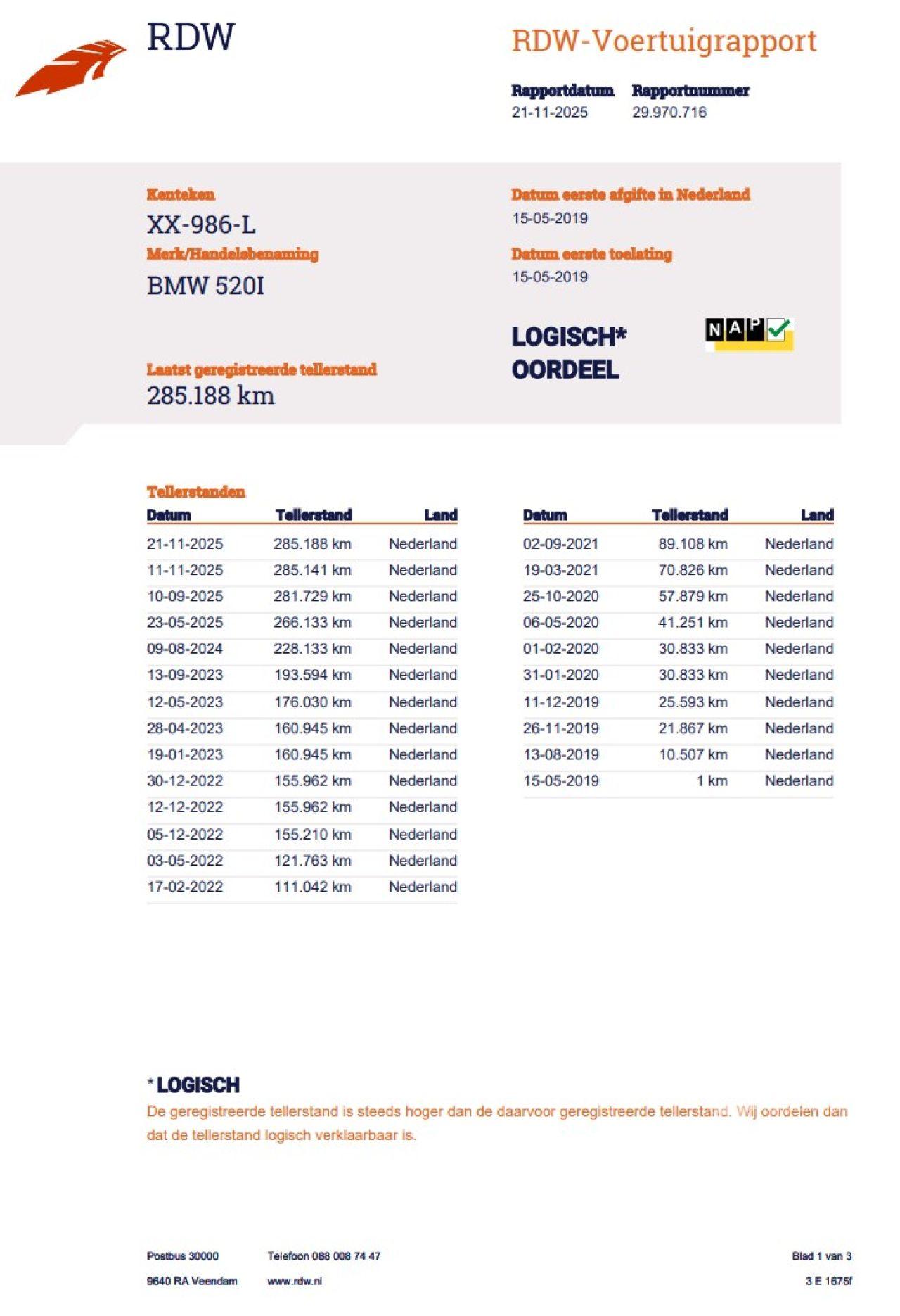 Stav tachometru: 285.188 KILOMETRY