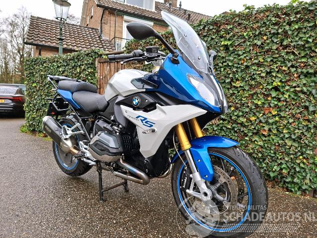 Deze BMW R 1200 RS uit 2015 is een krachtige 1200cc sporttourer met het kenmerkende boxerblok en cardanaandrijving. De blauw-witte uitvoering met Bos performance uitlaat