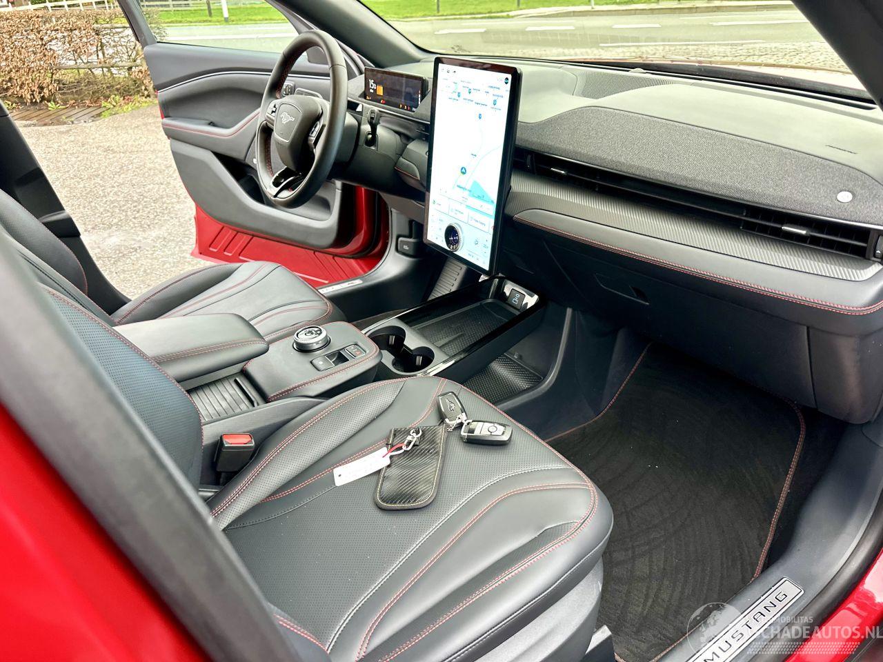 UNIEKE MUSTANG MACH-E 75kWh AUTOMAAT AWD - 2x sleutels + 2x laadkabels aanwezig - lage km.stand van 27.341km - 4x4 aandrijving - volledig panoramadak + zwarte hemel - 360 camera - elektr achterklep (ook te bedienen via voet) - front + line + side assist - keyless entry + start - clima + cruise control - licht + regensensor - B&O muziek installie + woofer - pdc v+a - metallic lak - vol zwart leer + rode stiksels - stoelverwarming - stuurverwarming - touchscreen multimedia + Apple CarPlay + Android - bleutooth tel lader - stuurbediening - 19 inch lmv - full led koplampen - privacy glass etc - financiering/lease mogelijk