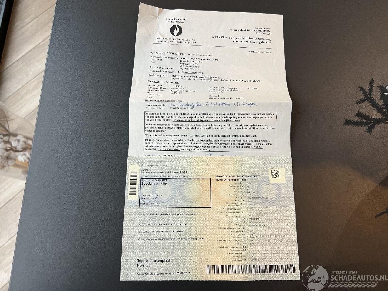 1 TEIL DER ZULASSUNGSBESCHEINIGUNG PLUS POLIZEILICHE VERLUSTBESCHEINIGUNG!!!
