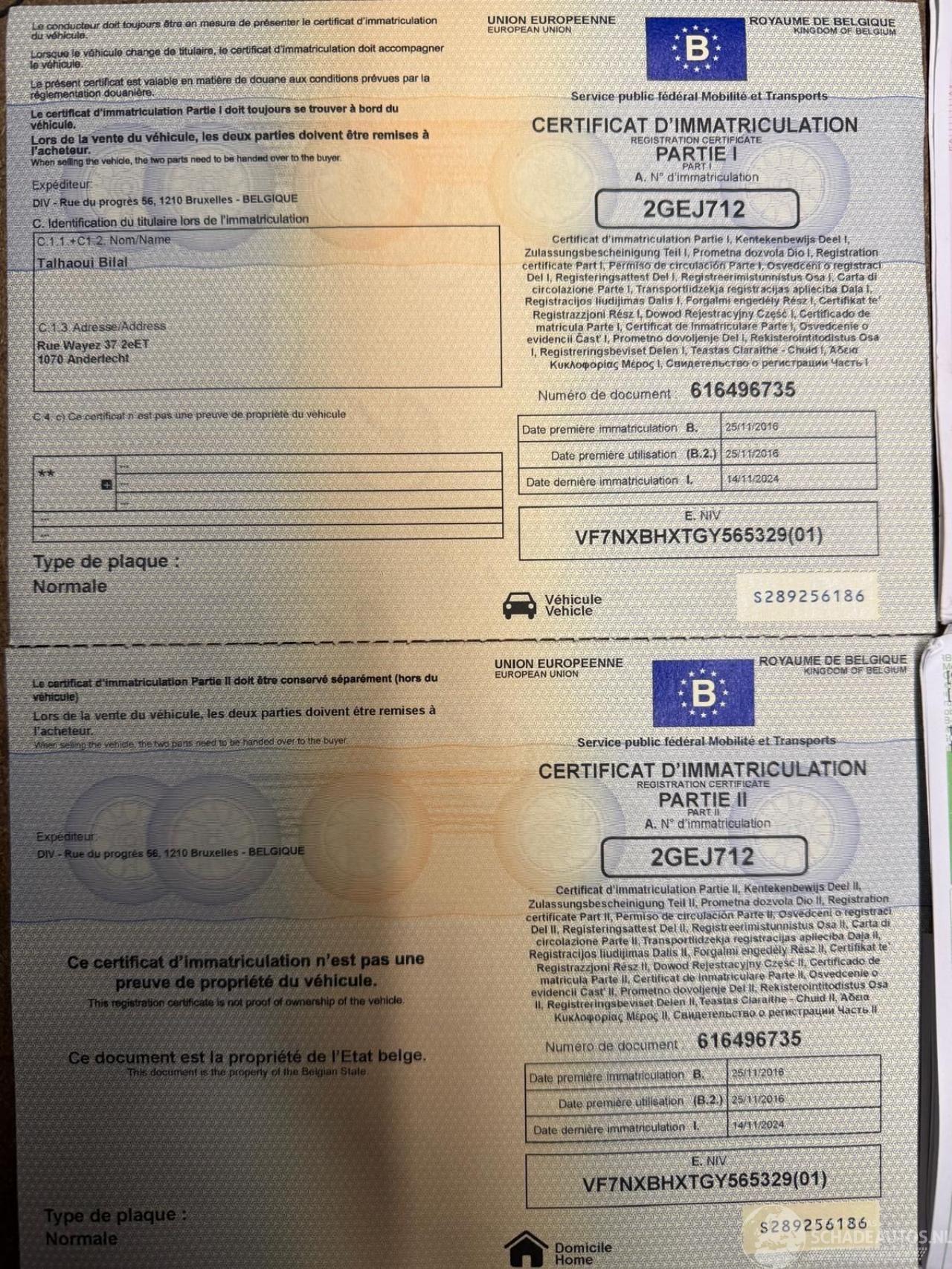 Chassisnummer: VF7NXBHXTGY56****